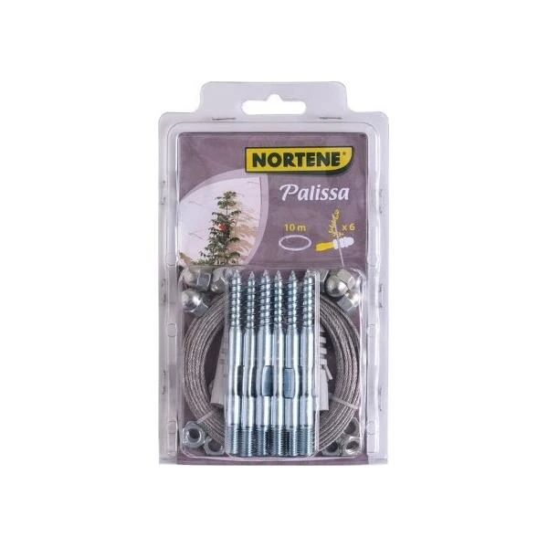 Het robuuste systeem bestaat uit 6 wandpluggen en een gegalvaniseerde kabel waarmee je een klimrek kan maken naar eigen wens.
