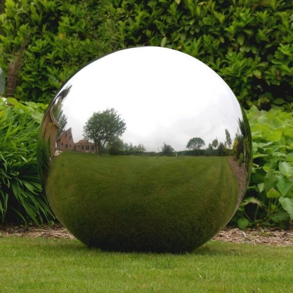Reiger verjagen van vijver met blinkende ballen van RVS. Schitterende bollen voor op de vijver of in de tuin, maar eveneens zeer mooi als binnenhuisdecoratie.